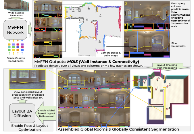 Our iterations started off by exploring a graphics focus human-in-the-loop pipeline (ZInD), to single / few-image layout estimation (PSMNet), two-view coarse camera pose estimation (Salve / CovisPose) and full scale learned bundle adjustments from dozens of input panorama images (BADGR).